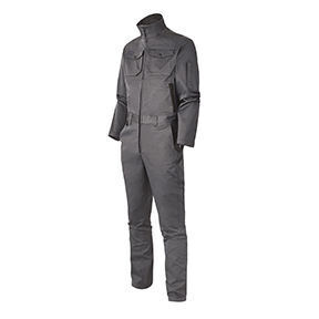 Combinaison. Col montant. 2 poches poitrine à rabat pressionné. 2 poches basses zippées inclinées. Poche plaquée zippée manche. Ceinture semi-élastiquée dos, 5 passants dont 2 plus larges dans le dos . Découpes ergonomiques contrastés. Braguette avec fermeture à glissière. Accroche clefs inséré sous la ceinture devant droit. Poche plaquée au dos avec partie basse volante. Poignets ajustables par pression. Jambes préformées. E.J. : 84 cm.