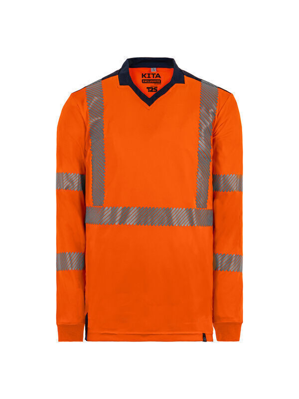 T-shirt haute visibilité version manches longues. | 3 bretelles et 1 ceinture rétroréfléchissantes microbilles segmentées RETHIOTEX®. Maille thermorégulante 37.5® double face. Coupe ajustée.