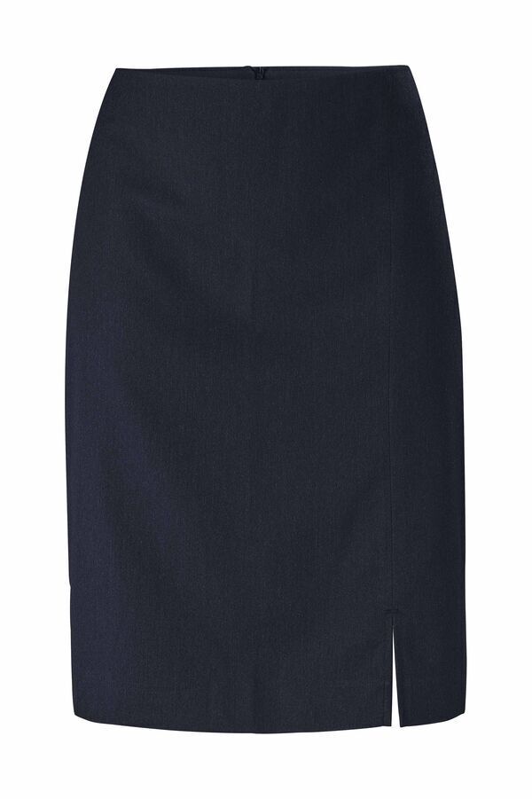 Jupe avec fente sur le devant. Dos fermé par fermeture à glissière invisible et 2 pinces taille au dos. Longueur : 52 cm.