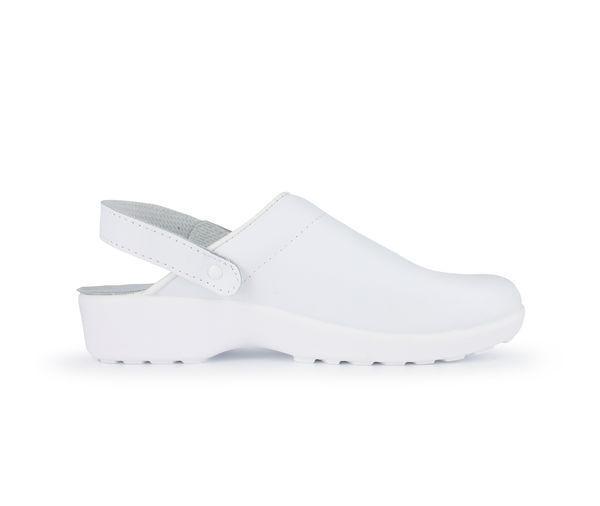Sabots non sécurité mixte.Tige cuir lisse. Bride de maintien pivotante, réglable par boucle. Bourrelet de confort. Semelle intérieure Microtech® sur matelas mousse. Semelle externe Medicare Sole® polyuréthane, EVA antidérapante. Doublure antibactérienne, antimycosique. Talon : 3,5 cm.