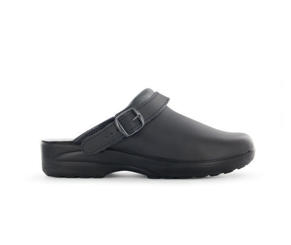 Sabots non sécurité mixte.Tige cuir lisse. Bride de maintien pivotante, réglable par boucle. Bourrelet de confort. Semelle intérieure Microtech® sur matelas mousse. Semelle externe Medicare Sole® polyuréthane, EVA antidérapante. Doublure antibactérienne, antimycosique. Talon : 3,5 cm.